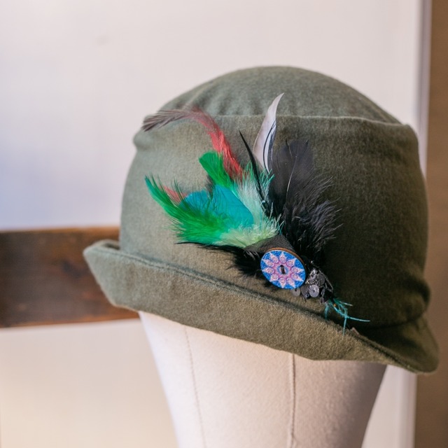 カラフルなカラーフェザーを組み合わせたハットピンです。